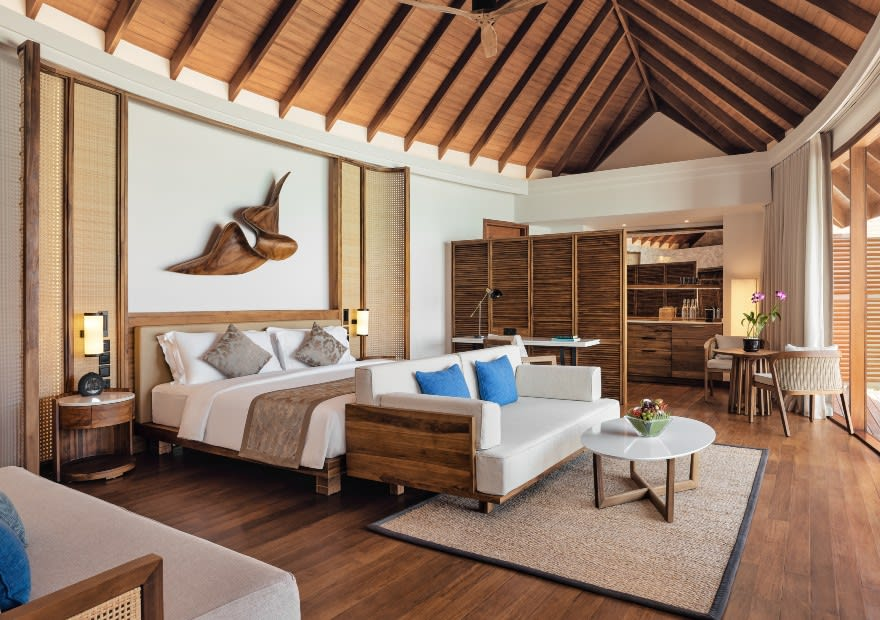 Anantara Dhigu offers multiple villa categories, each designed with tropical elegance, rich woods, and harmonious integration with the island’s natural environment. From cozy beachfront retreats to stunning overwater suites above the lagoon, every space feels personal and thoughtfully arranged. Whether you’re a couple seeking romance, a family creating memories, or friends traveling together, there’s a villa that fits just right. All villas include open-air bathrooms with freestanding terrazzo tubs, rain showers, air-conditioning, Wi-Fi, TV, and breakfast, with warm touches like private sun decks, sunrise or sunset orientations, and some with private pools adding to the relaxed, island living experience. It’s a stay that balances barefoot luxury with just the right amount of comfort and space.
