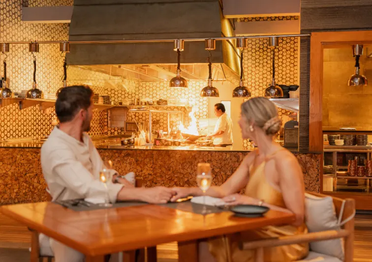 Our restaurants offer everything from intimate underwater dining at SEA to theatrical teppanyaki at FIRE, elevated Asian cuisine at SPICE, and casual beachfront favourites at Plates. Whether you’re seeking a romantic dinner beneath the stars or a relaxed family meal by the beach, we have the perfect setting. If you have any special dietary requirements, please let us know in advance so our chefs can prepare bespoke options tailored to your needs. At Kihavah, every dining experience is designed to exceed expectations.