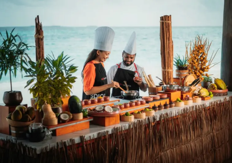 Join the resort’s talented chefs for hands-on Spice Spoons cooking classes featuring Maldivian, Asian, and international cuisines. Learn the secrets behind signature dishes, explore local spices and ingredients, and take home new skills to impress family and friends. Classes are available for both adults and children.